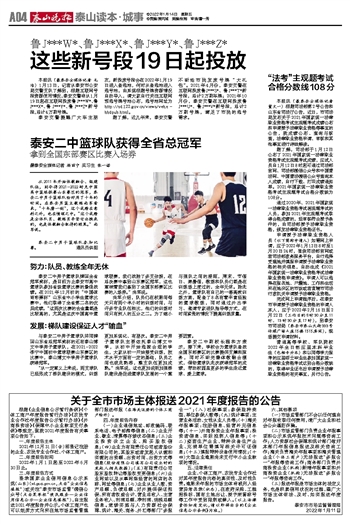 泰安二中男子篮球队捧回全省冠军奖杯,是目前为止泰安市高中篮球队参加省级篮球比赛的最佳战绩。在2021年12月初的“中国体育彩票杯”山东省中小学生篮球比赛中,他们取得了全省第二名的优异成绩。“这两次比赛的含金量都是比较高的,尤其是这次中国高中篮球联赛,我们战胜了多支劲旅,在总决赛中拿到山东赛区冠军,这也意味着我们拿到了全国东部赛区比赛的入场券。”尚军说。