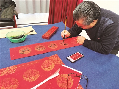 本报讯(最泰安全媒体记者 张芮 实习生 刘静)红色的“福”字、对联,洋溢出浓浓的节日氛围。1月14日上午,岱庙街道市场社区组织社区内的书法爱好者,在社区服务中心进行书法创作,给社区居民写“福”字和对联。