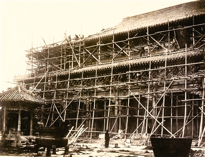 1956年拍摄的天贶殿正在搭架整修。