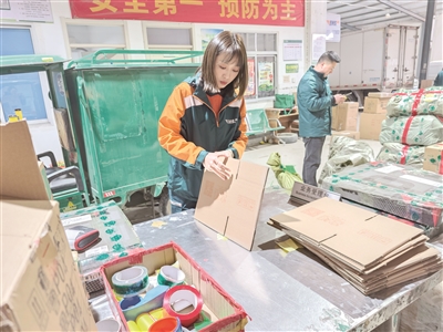“宋经理,来看下这件快递。”送完快递包裹回到网点,还没顾得上喝口水,快递员徐大哥就叫住了宋阳。“这件包裹高度得有一米五,咱们这个快递车根本放不下,这可咋办?”徐大哥很为难。“与客户电话沟通一下,我们安排专人专车晚些给她送过去。”宋阳看了包裹的外包装,是从菏泽发来的牡丹花,她告诉记者,这两年选择“就地过年”的人越来越多,快递中的“年味”也越来越浓。最近的快递包裹中,多了很多特殊年货,有父母寄给子女的鲜花,有子女寄给父母的棉被等,满满都是亲情和牵挂。“大家辛苦一点,一定要把‘年味’送到顾客手中。”宋阳坚定地说。