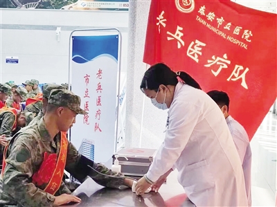 泰安市立医院有170余人是军队医院退役和有着军队医院工作经历的医务工作者。其中60余人是相关领域的知名专家、骨干人才乃至行业领军人物,很多人参加过国际维和、中俄联演、汶川和玉树抗震救灾、北京小汤山抗击非典、武汉火神山抗击新冠肺炎疫情等重大行动,多人受到了国家表彰。浓浓的红色基因、火热的军旅生涯让这些退役医务工作者对退役军人的医疗服务有着更高的热情。医院“老兵医疗队”多次走进军营开展“医疗服务进军营,情系官兵送健康”义诊服务活动,与部队官兵共叙军民鱼水情,重温难忘的部队生活。