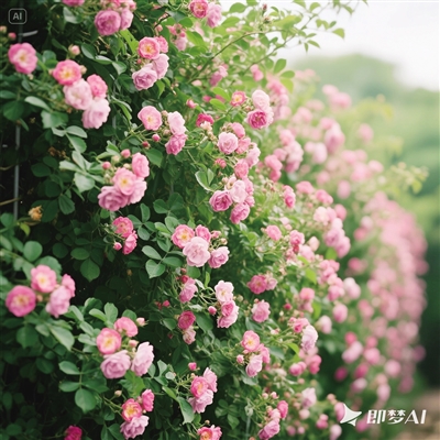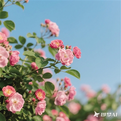 初夏的风掠过街角,蔷薇花便顺着墙倾泻而下。粉白、嫣红的花瓣层层叠叠,像被揉碎的晚霞泼洒在绿叶间。