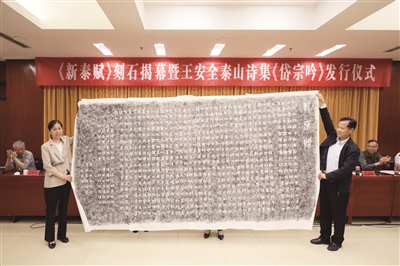 本报讯(记者 杨玉洁)“‘新甫泰山,取首字而为名。’原来咱们家乡取名‘新泰’是因为靠近新甫山和泰山。”读着石刻内容,市民直呼“长知识了”。5月13日,《新泰赋》刻石揭幕,王安全泰山诗集《岱宗吟》发行,新泰文化发展历程新增浓墨重彩的一笔。