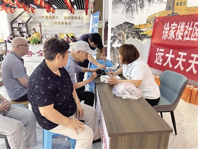 活动现场,徐家楼社区工作人员把包含藿香正气水、滴眼药、防蚊虫叮咬喷液等药品的“防暑降温”礼包发放到居民手中,药店工作人员为到场居民提供免费测量血压、血糖等健康检查服务,并耐心解答居民提出的健康问题。
