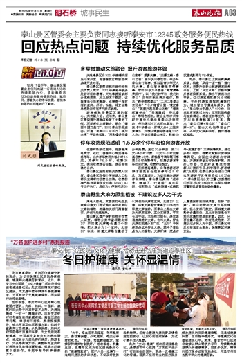 12月11日下午,泰山景区管委会主任刘式堃一行走进12345热线现场办公,接听泰安市12345政务服务便民热线,就市民、游客关心的停车收费、游览体验等热点问题进行了解答。