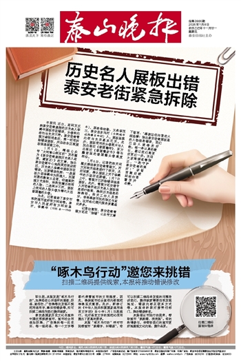 本报“啄木鸟行动”呼吁市民帮城市“挑错字、纠错误”,您可以扫描二维码将发现的问题告诉我们,提供线索需要注明发现地址、错误内容及联系方式等。本报将积极对接责任部门,推动错误修改。